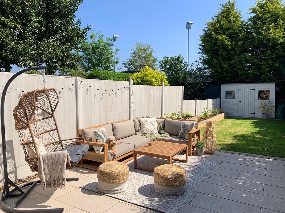 Top tip: Create cohesion between your indoor and outdoor spaces by using sage on your fence panels and your interiors too. Add accessories in neutrals, woods or brown for a traditional, earthy look or use pops of mustard yellow to make your scheme more vibrant.