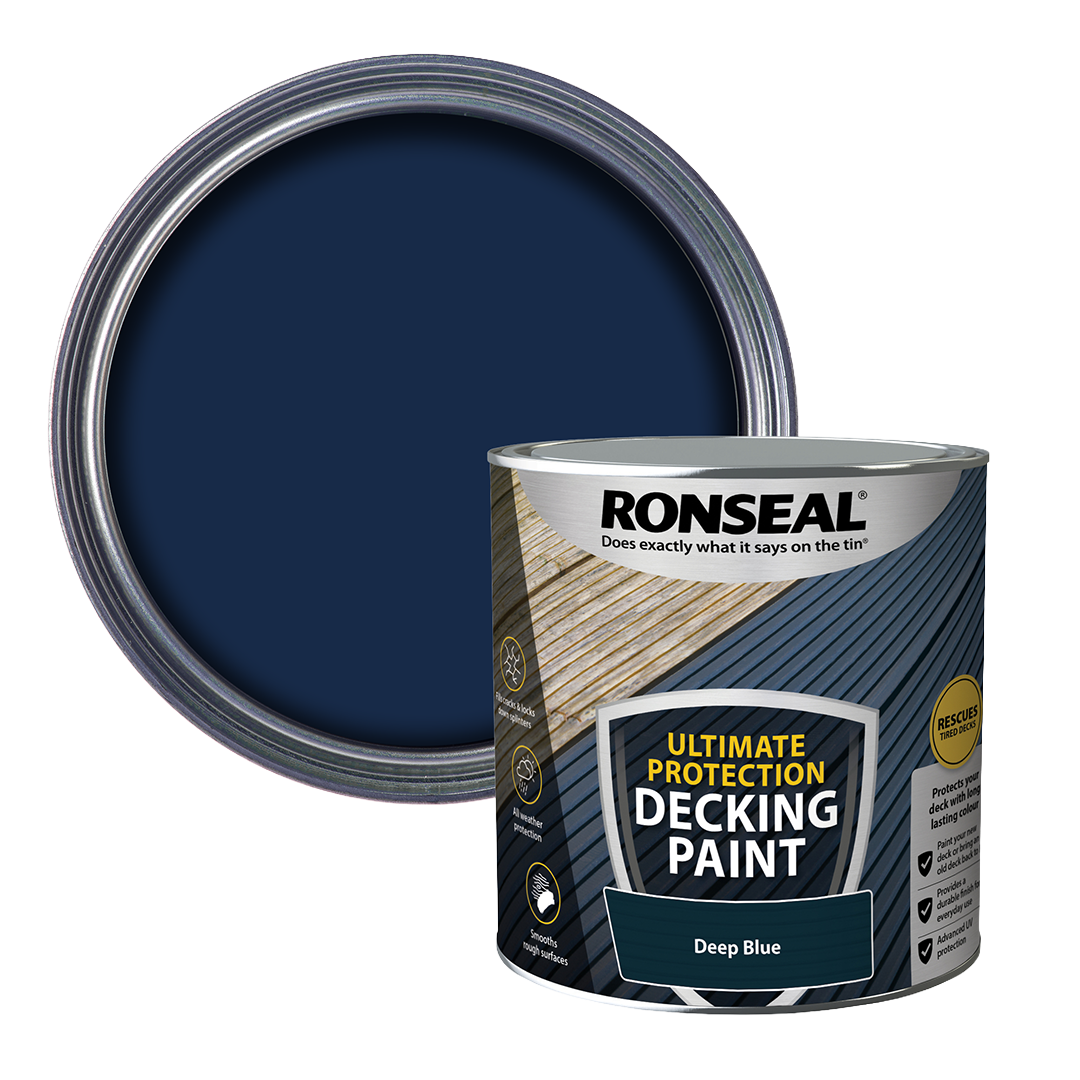 Ronseal Ultimate Protection Decking Stain is available in a range of wood tones, as well as more contemporary options like Charcoal, Slate, Stone Grey and White Wash. If it's an opaque blue or black colour that you're after, try Ronseal Decking Rescue Paint Deep Blue or Charcoal.